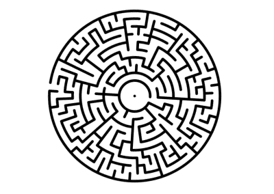 В соборе Фарли (Франция) кающиеся богомольцы проходили200 метров на коленях по такому лабиринту, нанесенному на полу в пределах круга диаметром только 12 метров.